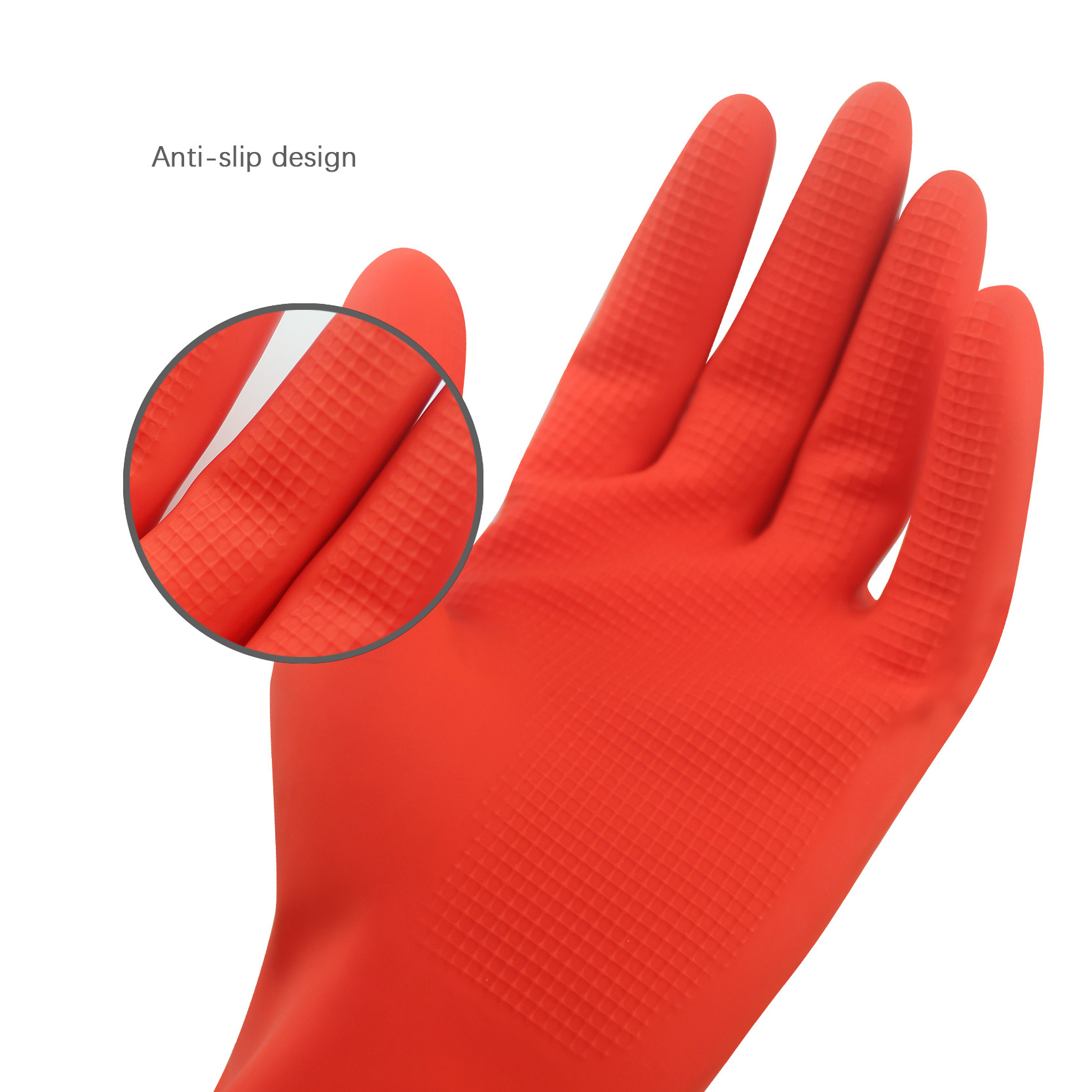 NON-SLIP DESIGN - Non-slip embossed palm and finger surface increases friction and offers a better grip and control to wet and greasy dishes and gadget during cleaning. A flocked lining also help tackle your cleaning and household activities flexibly and conveniently.
